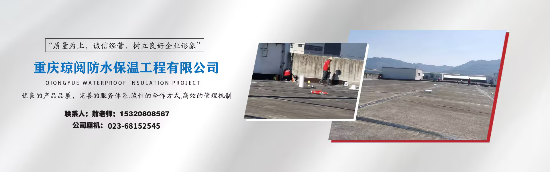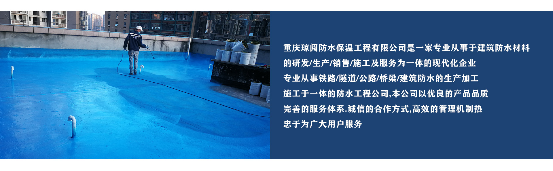 重庆琼阅防水保温工程有限公司是一家从事于建筑防水材料的研发/生产/销售/施工及服务为一体的现代化企业,从事铁路/隧道/公路/桥梁/建筑防水的生产加工,施工于一体的防水工程公司,本公司以优良的产品品质,完善的服务体系.诚信的合作方式,管理机制热忠于为广大用户服务